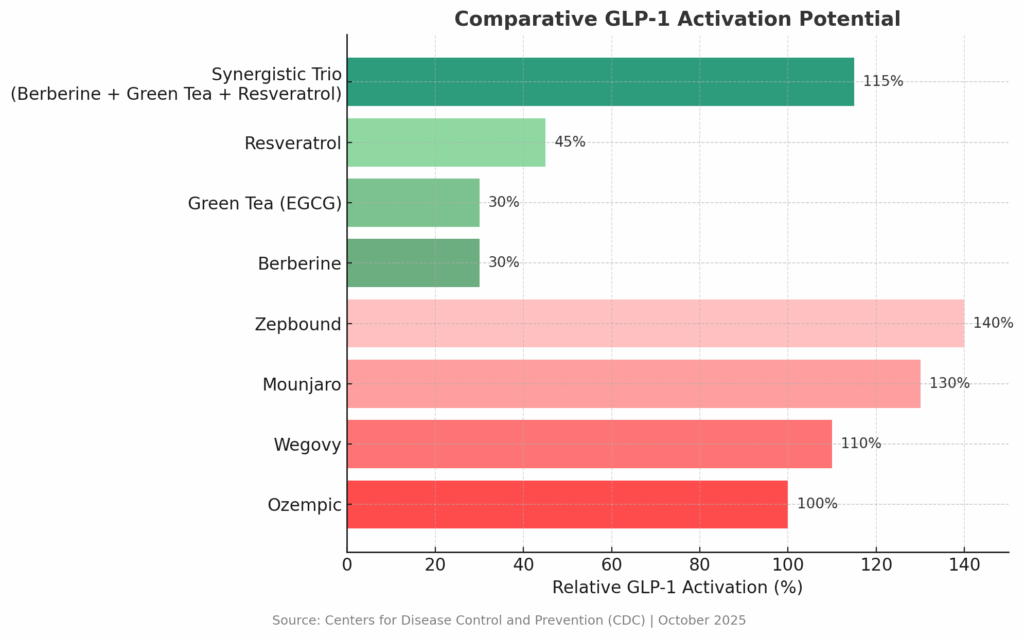 • Berberine  a highly researched plant compound that boosts natural GLP-1 secretion, stabilizes blood sugar, and enhances fat metabolism.